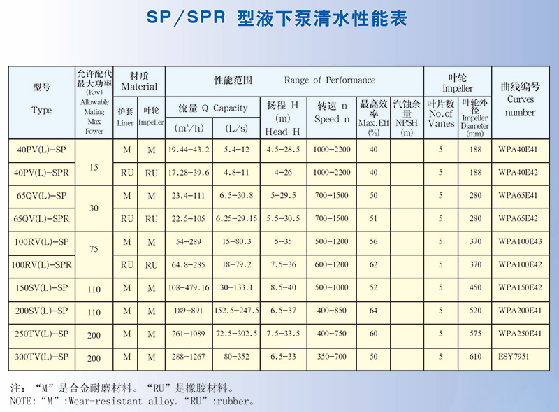 SP、SP(R)型液下泵為立式離心渣漿泵,侵入液下,用于輸送腐蝕性、粗顆粒、高濃度渣漿。不需要任何軸封和軸封水,在吸入量不足的工況下也能正常工作。
